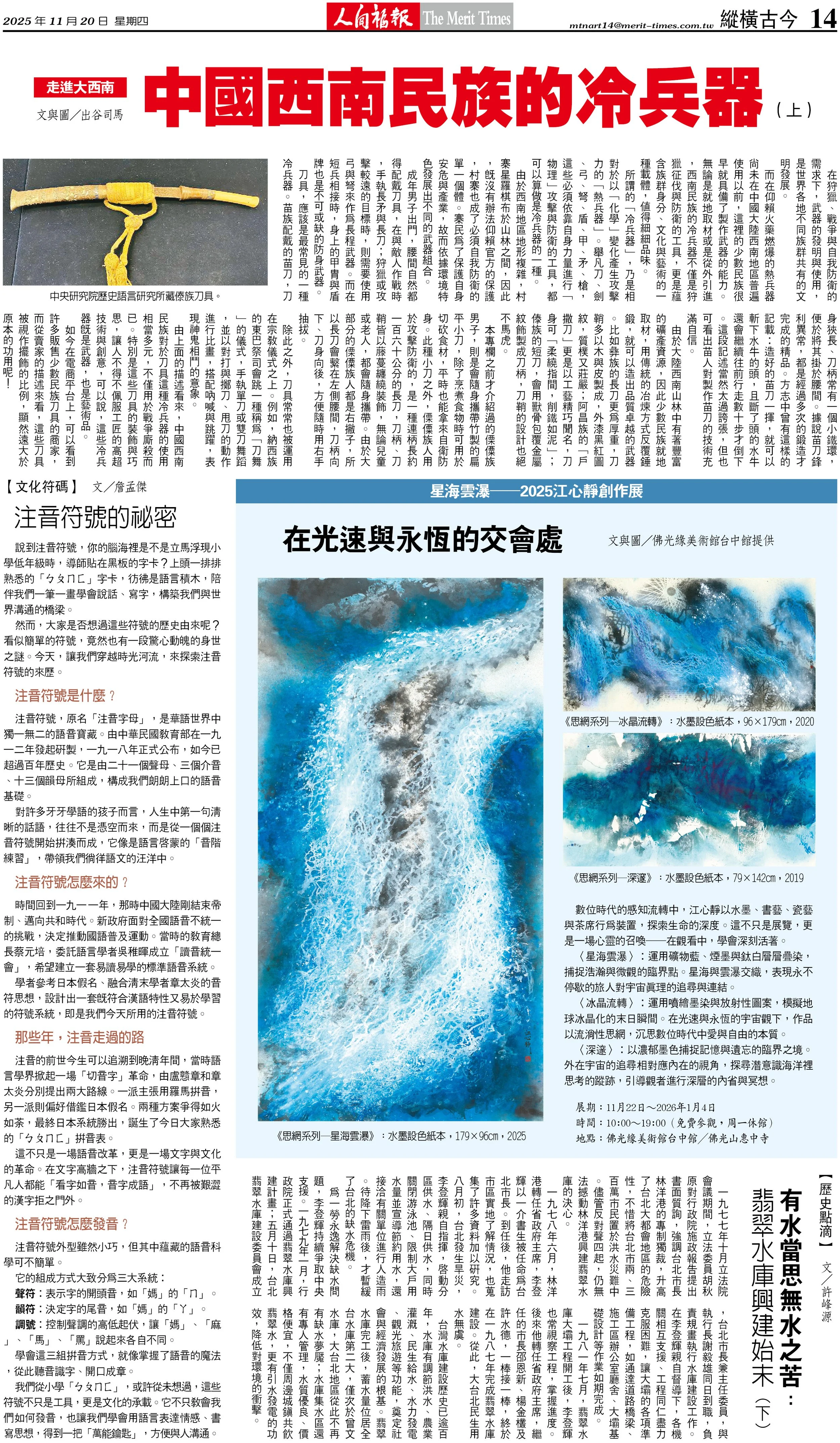 最後,則是《雲的一百種表情》書藝系列,雲流動多變的字體為當代人開闢了一處雲端隱逸空間,邀請我們內省與沉思人文倫理。《星海雲瀑》融合文學、哲思與藝術,在雲瀑流轉、星海閃耀的意象中,召喚您重新找回對生命的信仰與愛。離開時,您帶走的將不僅是畫面的記憶,更是一種「必須好好活著」的深刻體悟。